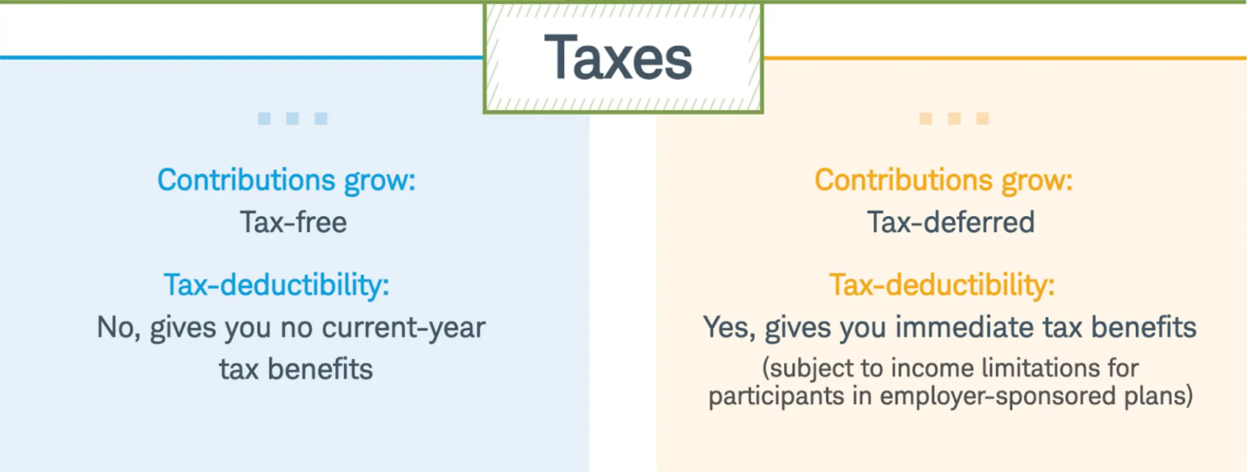 - Tax-Free Growth: Understand the tradeoffs between making after-tax or pre-tax contributions as it relates to account growth and taxation: