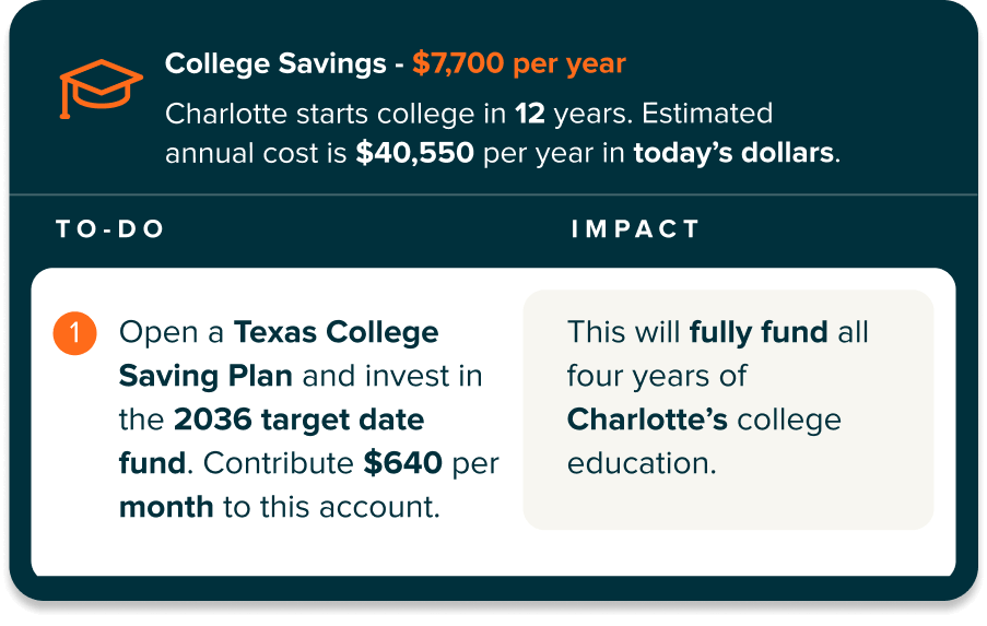 We'll help you gain clarity on your available resources, education goals, and funding desires to create a tax-efficient wealth building and distribution strategy. From 529 Plans to Roth IRAs to custodial accounts, we will find the best education savings plan for your situation.