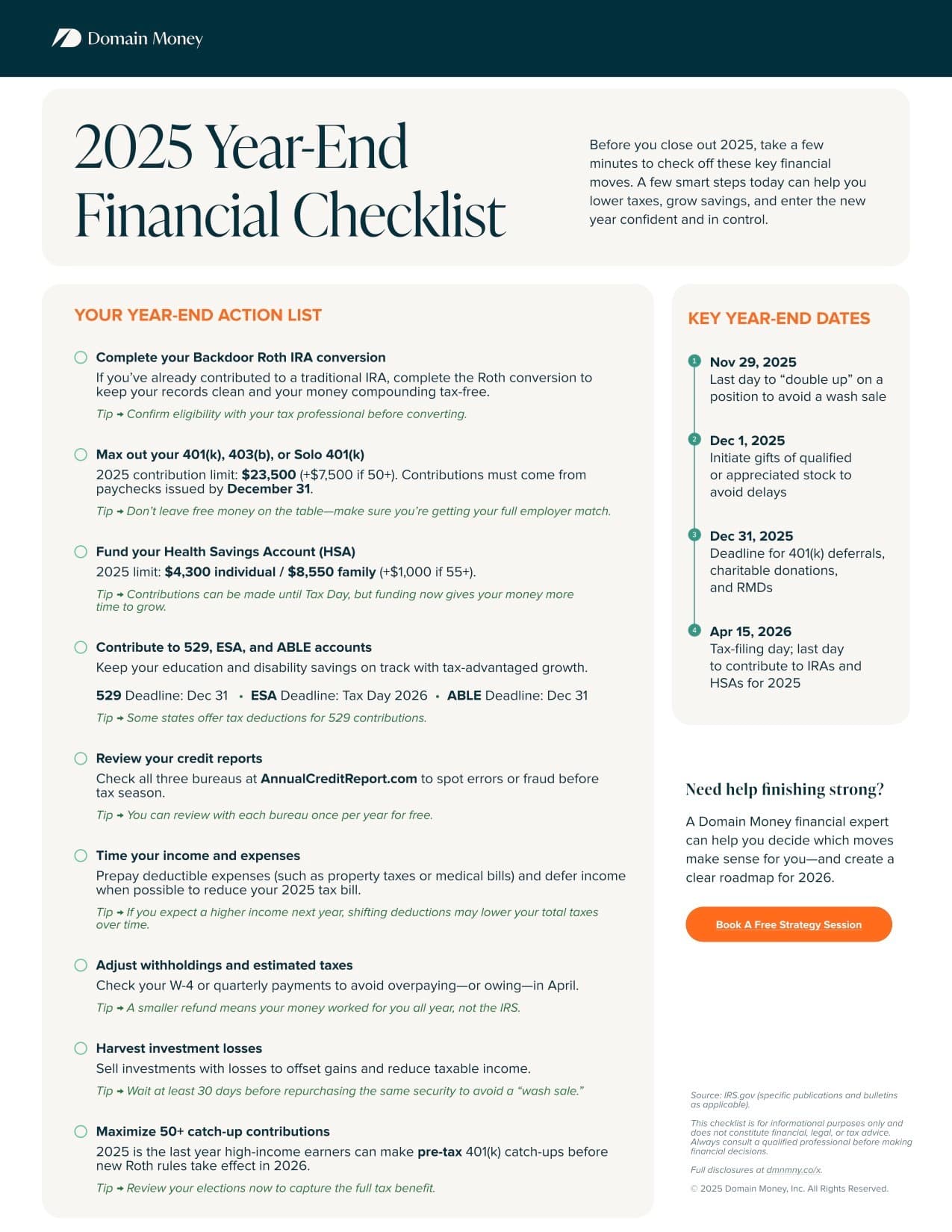 The first quarter of the new year is here, and with it comes that feeling of a fresh start that we all love. It’s the perfect opportunity to build on the strong financial foundation you've already established and make 2025 your most successful year yet. Whether you're looking to elevate your existing strategies or create a plan for the first time, Q1 is about having a plan to ensure you’re on the best possible path to reach all of your goals. Here are the top 10 things to focus on in Q1 to take your financial journey to the next level.